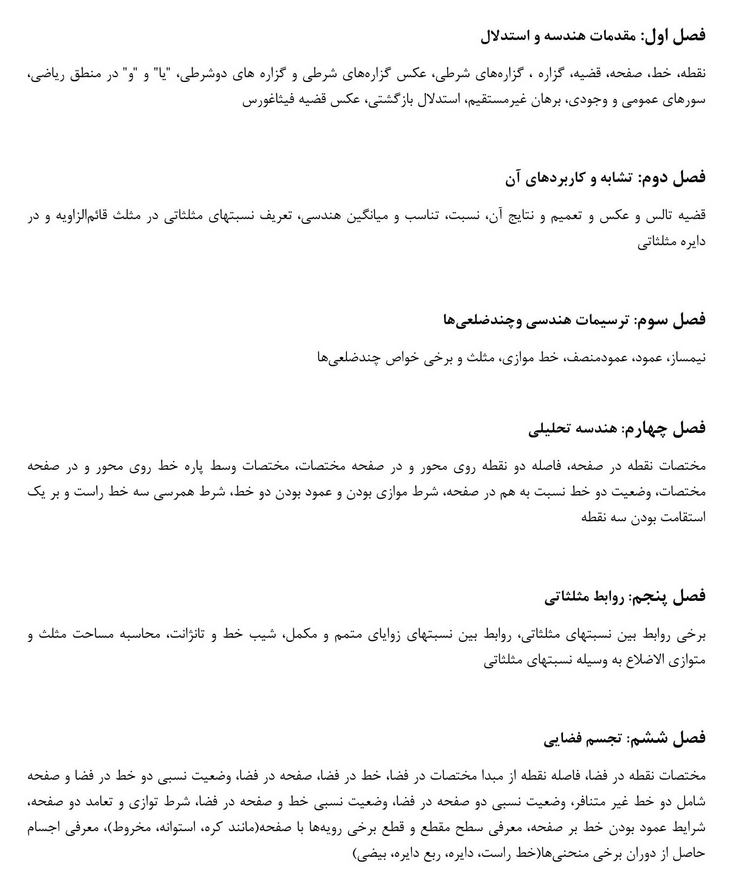 سر فصل های هندسه ومثلثات سال دهم